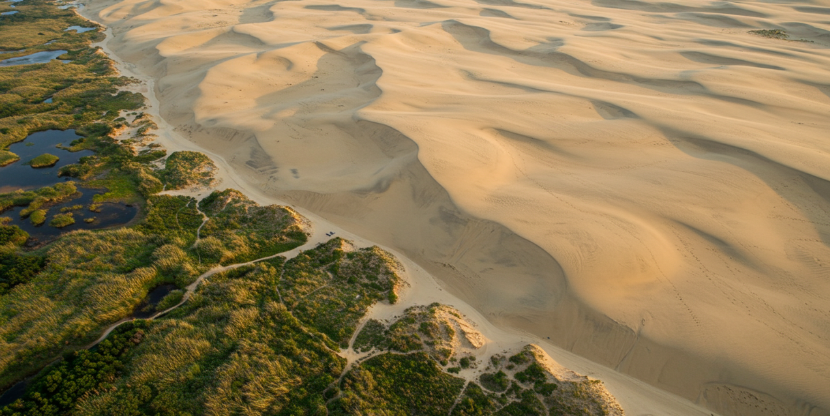 거센 바닷바람이 빚어낸 유려한 곡선의 사구 지형까지—